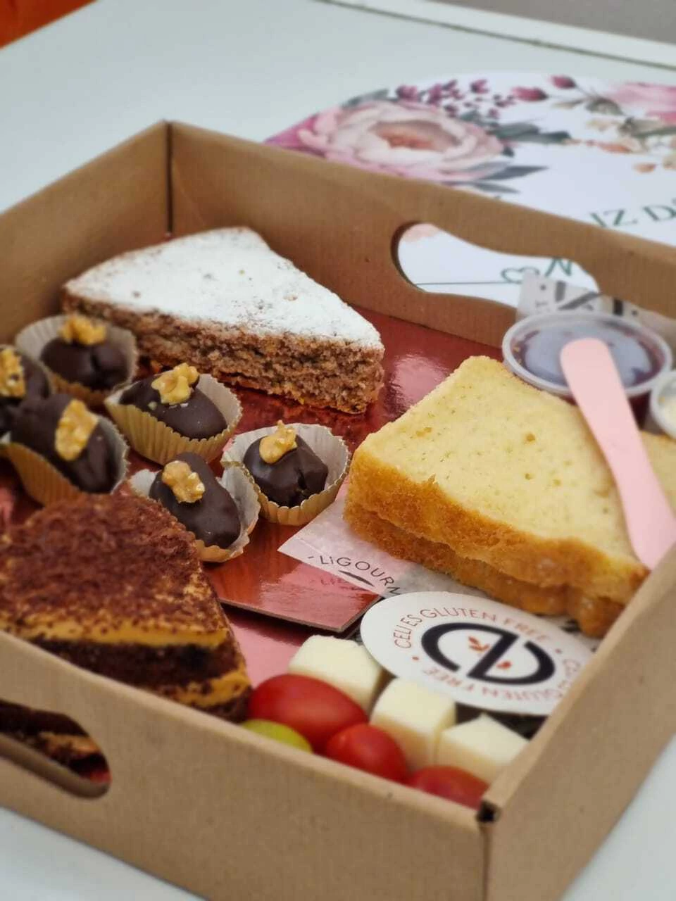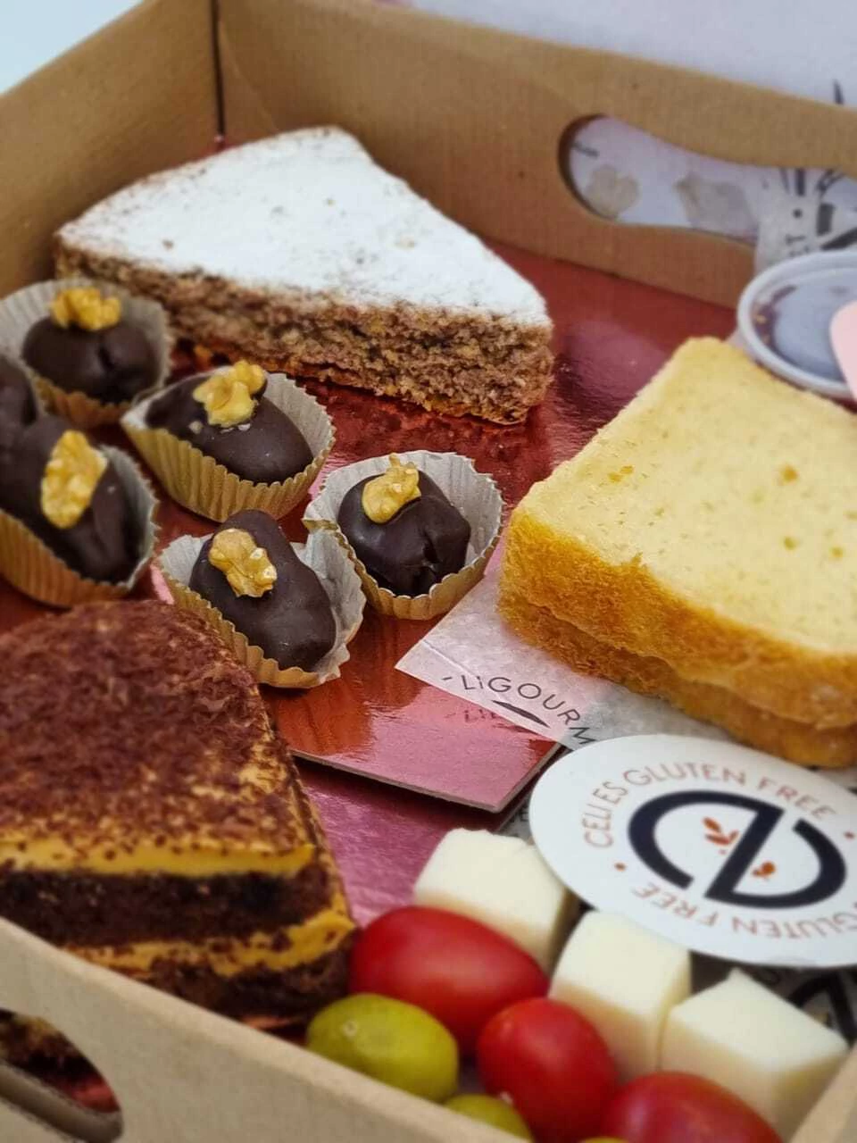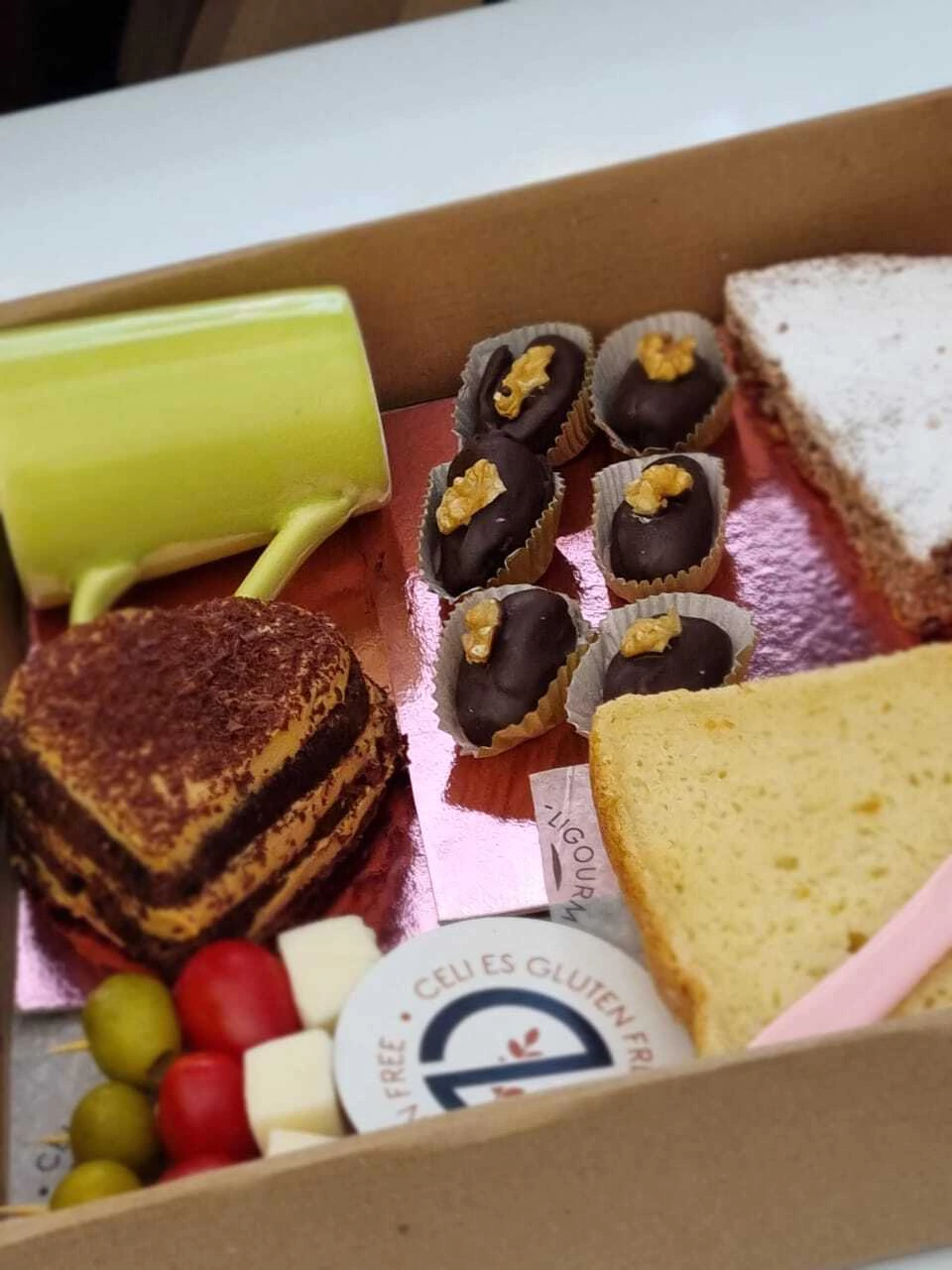 1 caja con 6 bombones artesanales de dátil, nuez y chocolate